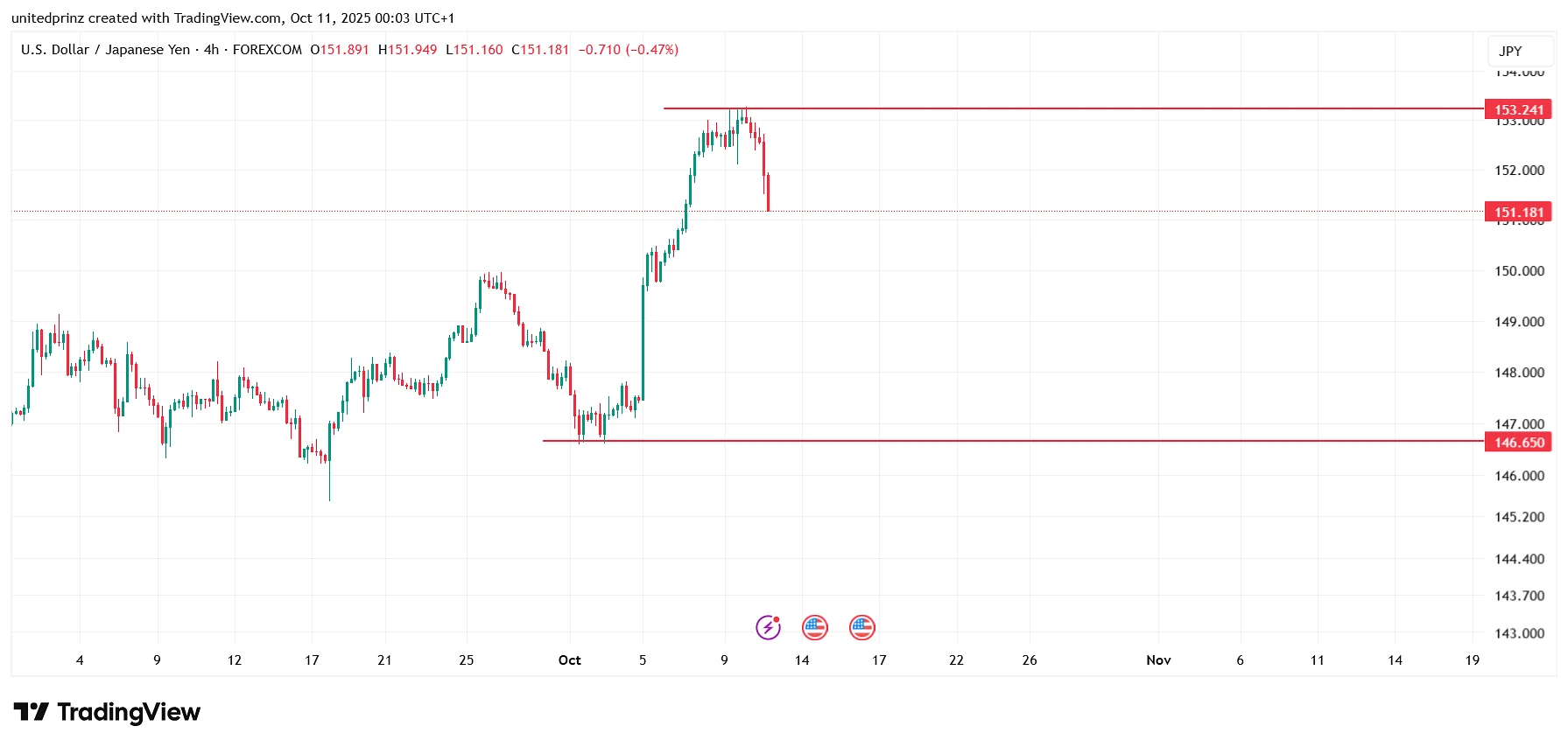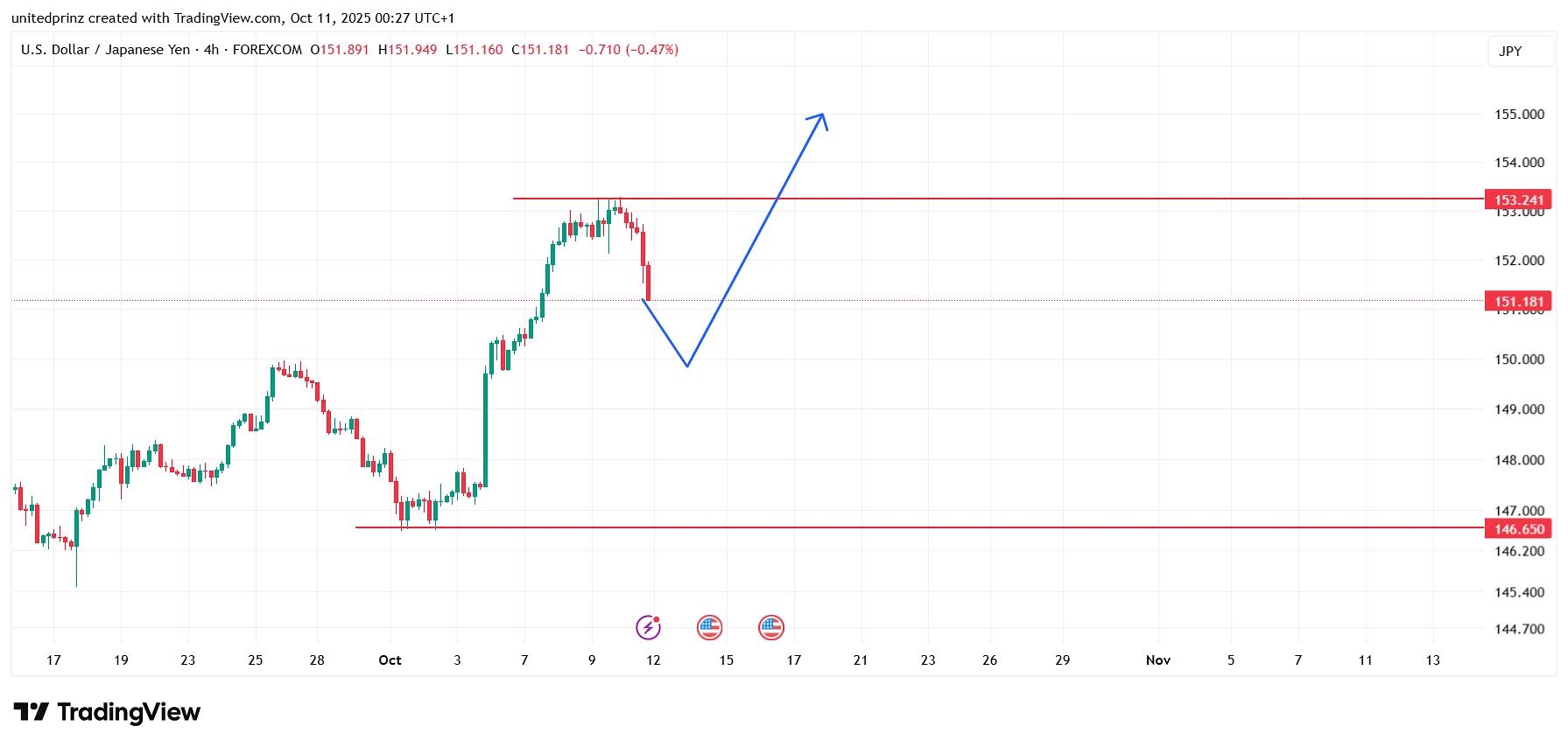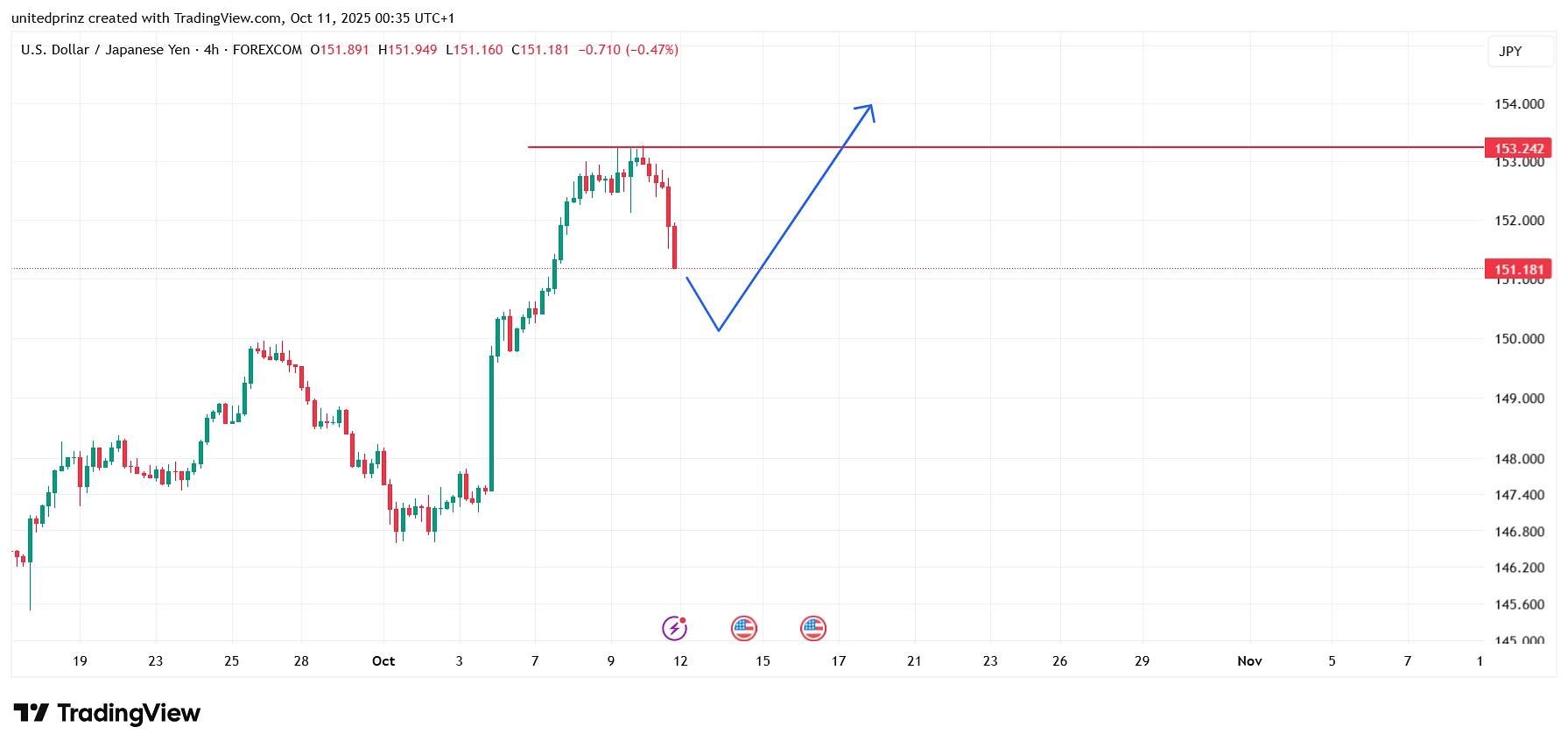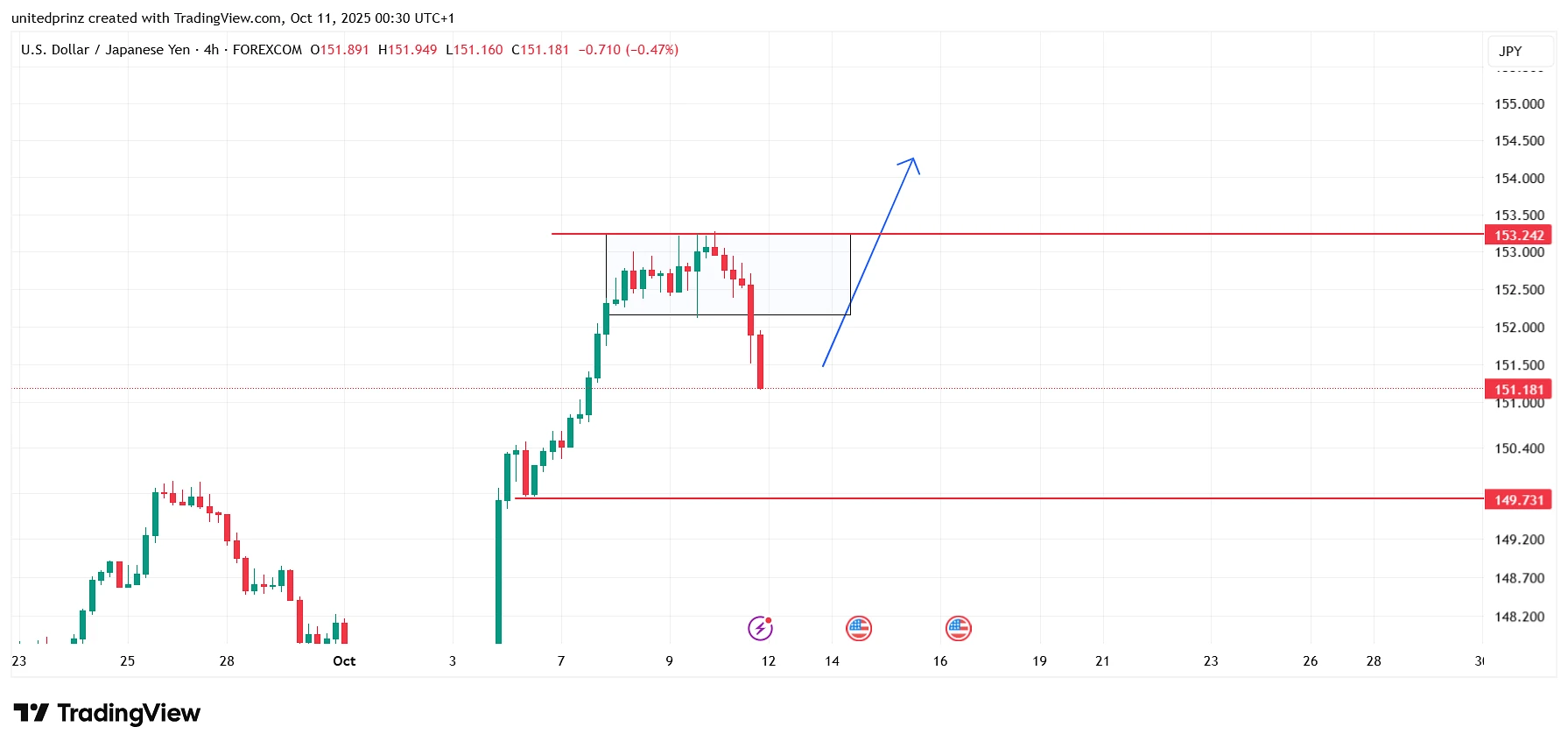 USD/JPY bullish above 151.15, targeting 153.65–154.10.