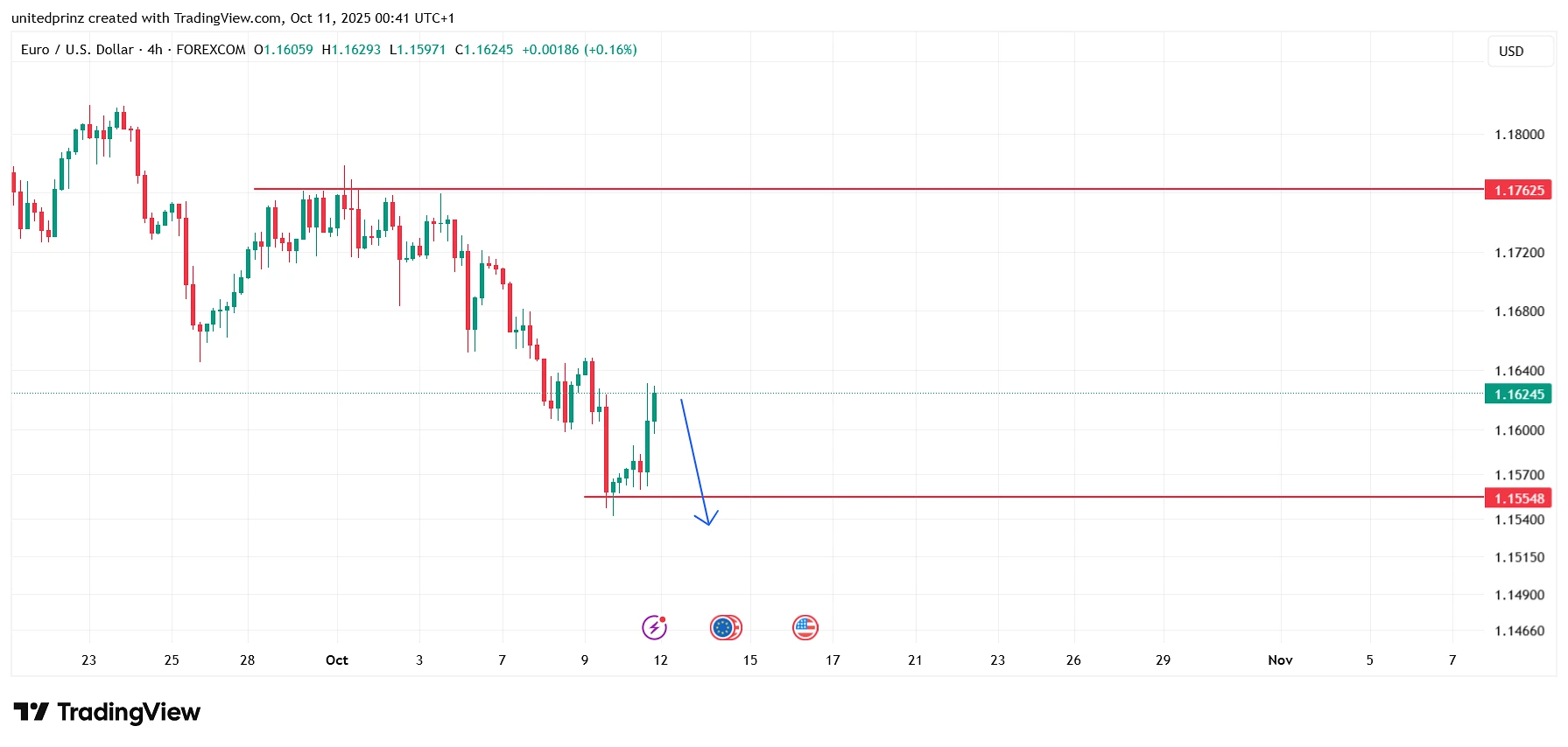 🎯 Sell EUR/USD on confirmed inflation weakness below 1.1575
