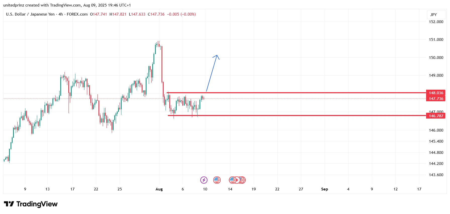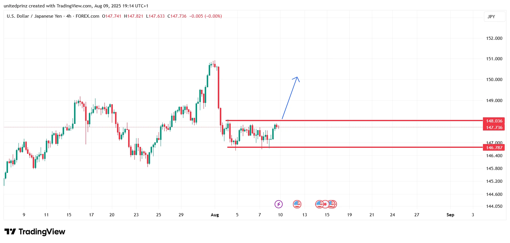 🎯 Buy USD/JPY on retail sales beat above 0.7% and inflation expectations above 4.7% above 148.00
