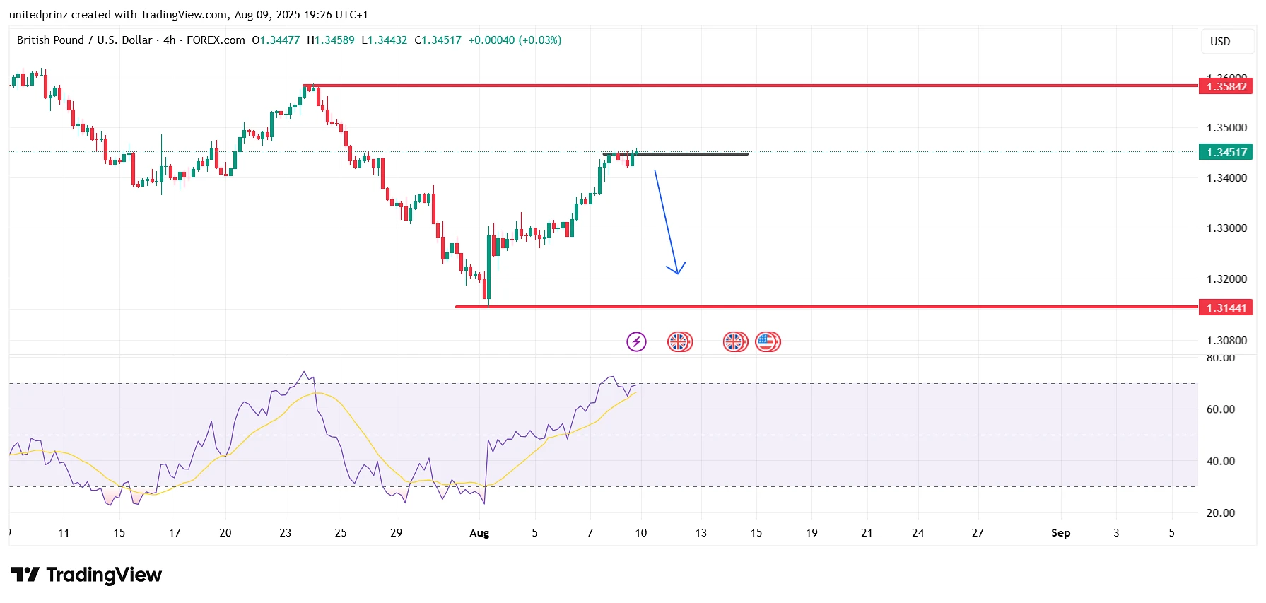 🎯 Sell GBP/USD on GDP miss below 0.0% below 1.3410