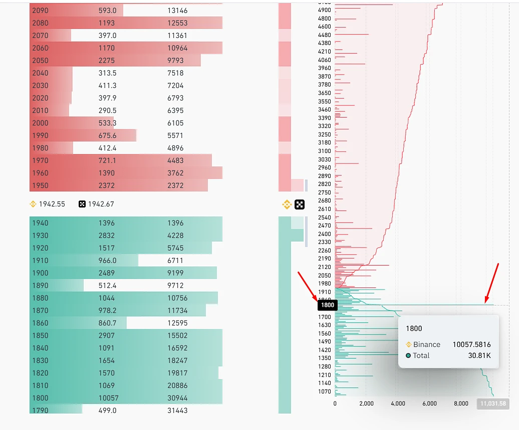 If the $1800 level holds and liquidity remains on the order book, we get: