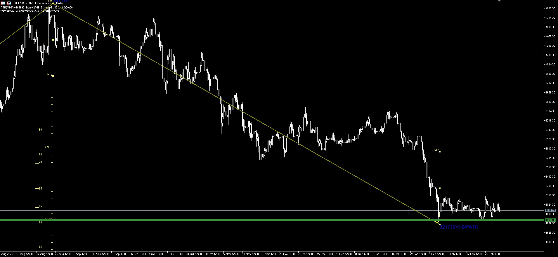 ETHUSDT: A large 10,000 ETH limit order at $1800 and a 90% probability of a correction by the monthly ATR