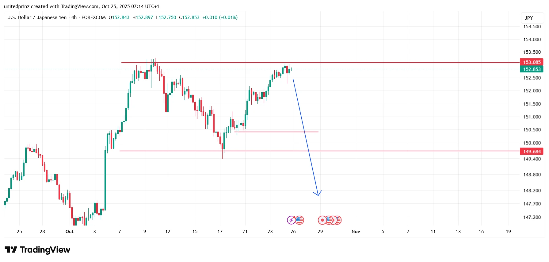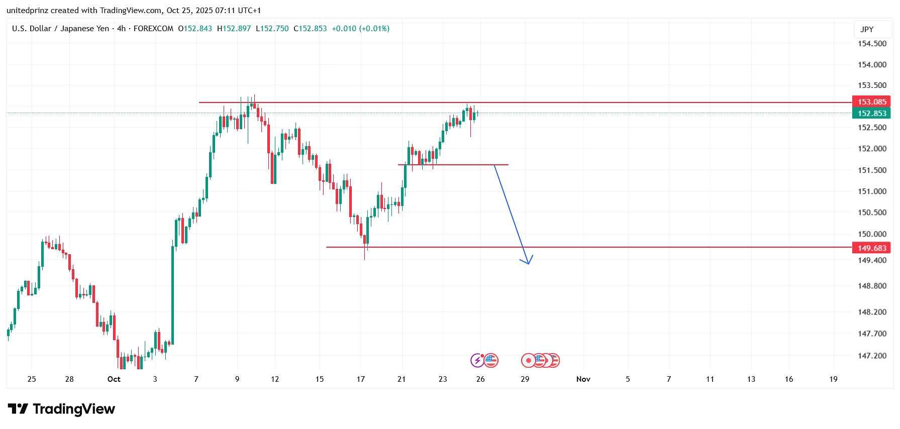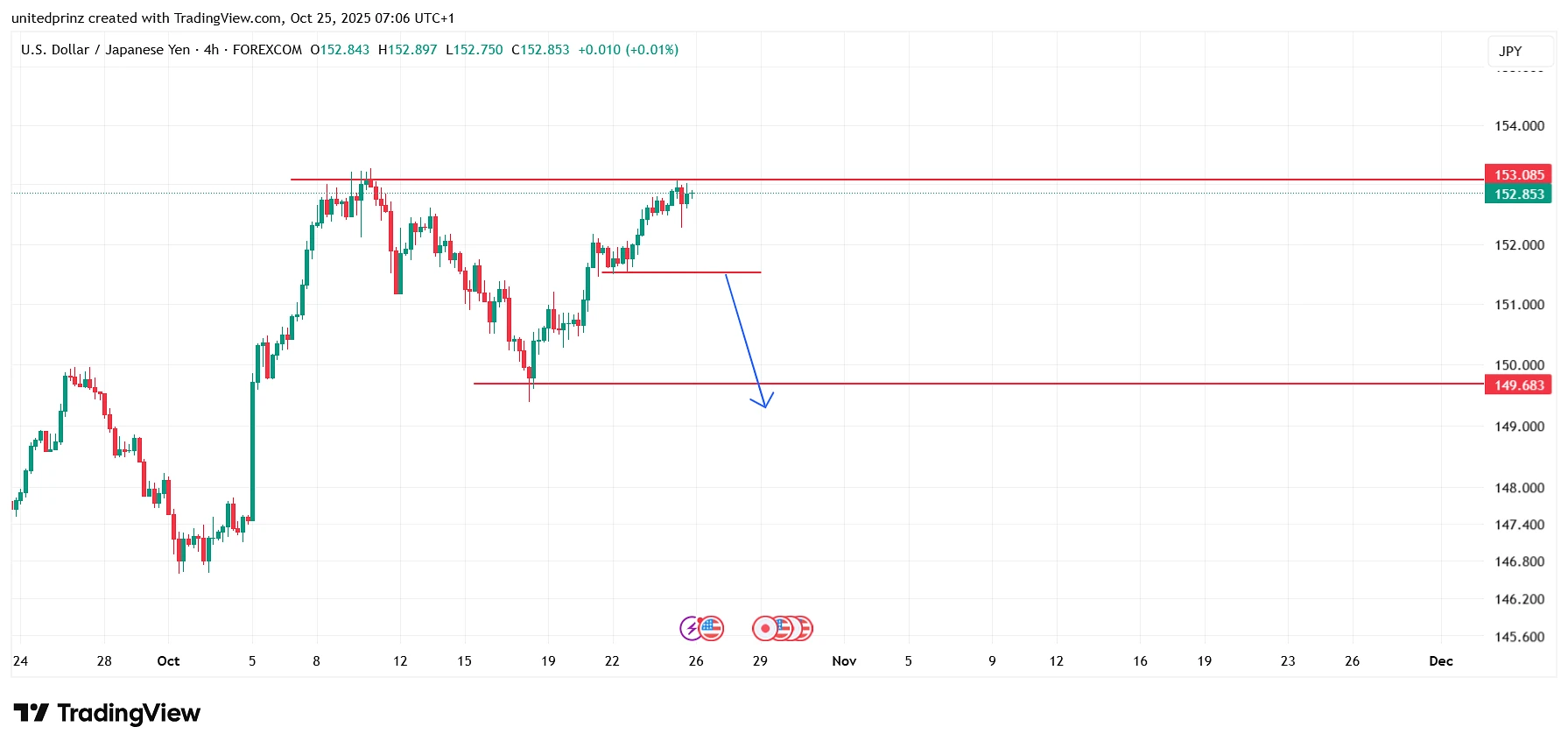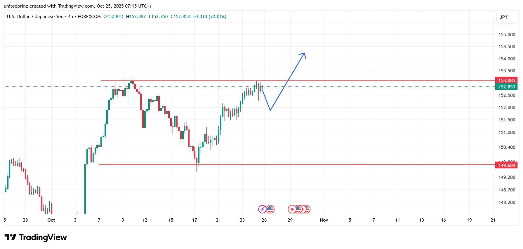 🎯 Buy USD/JPY on stronger GDP above 152.00