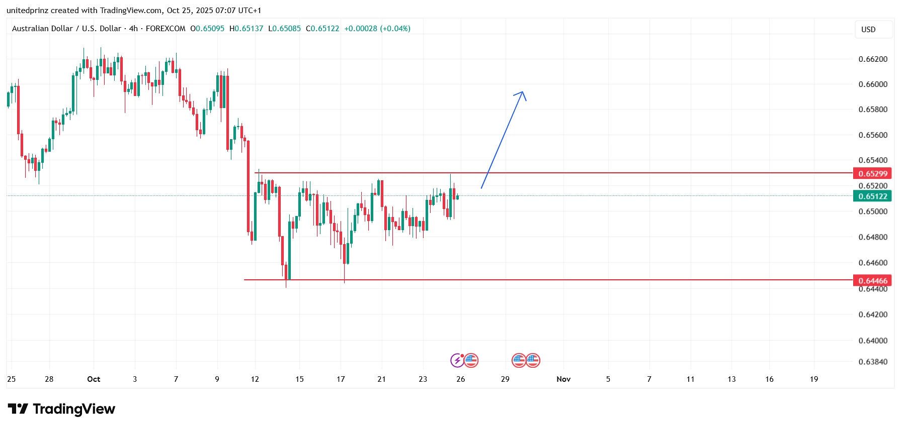🎯 Buy AUD/USD on hawkish rhetoric above 0.6525