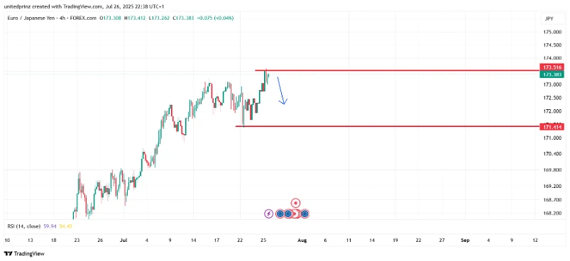 🎯 Sell EUR/JPY on failure near 174.00