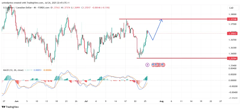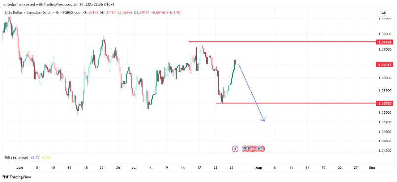 🎯 Sell USD/CAD on rallies to 1.3700–1.3730