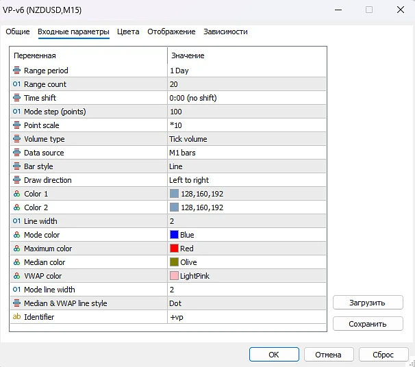 Volume Profile Indicator for MT5 settings