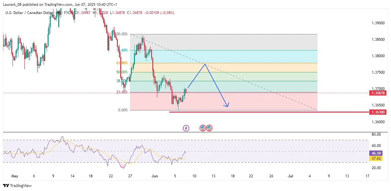🎯 Sell USD/CAD on breakdown below 1.3770