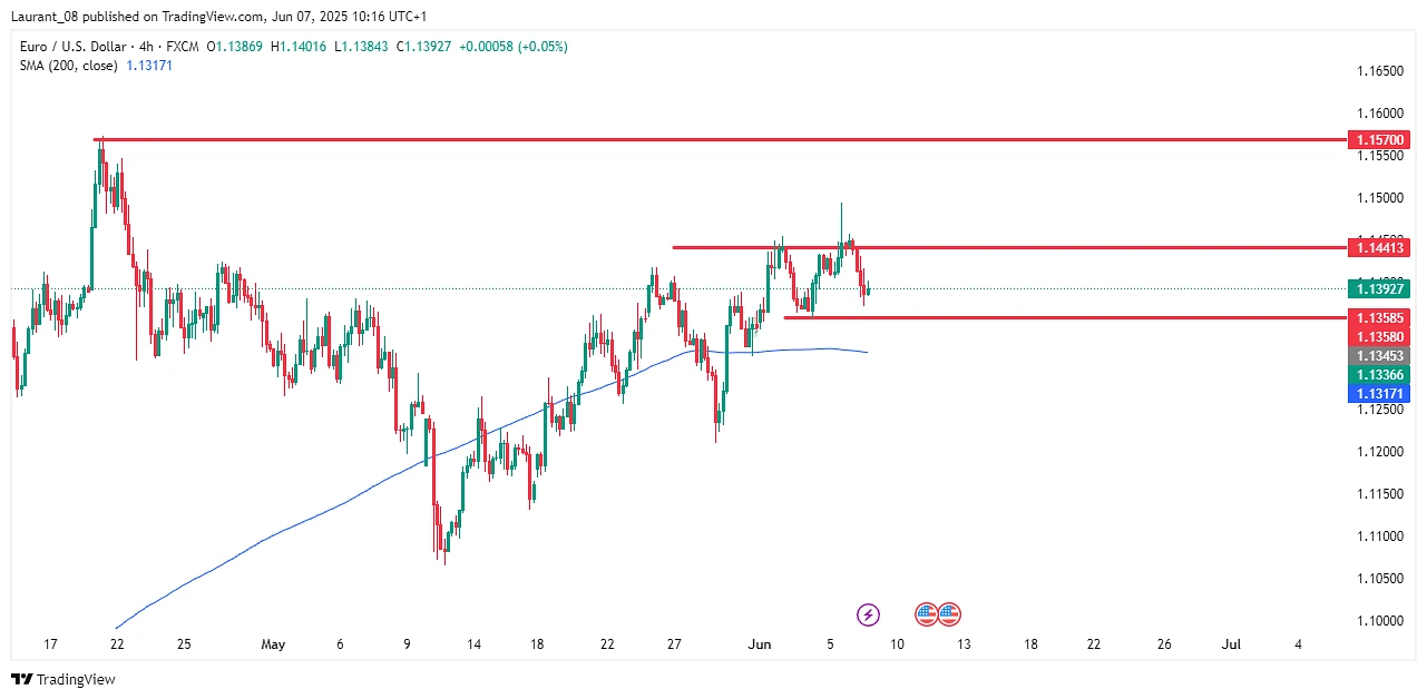 EUR/USD rebounds from 1.1200 support. Resistance at 1.1441 (200-day SMA). A breakout above 1.1440 could target 1.1450, while reversal risks persist below 1.1300.