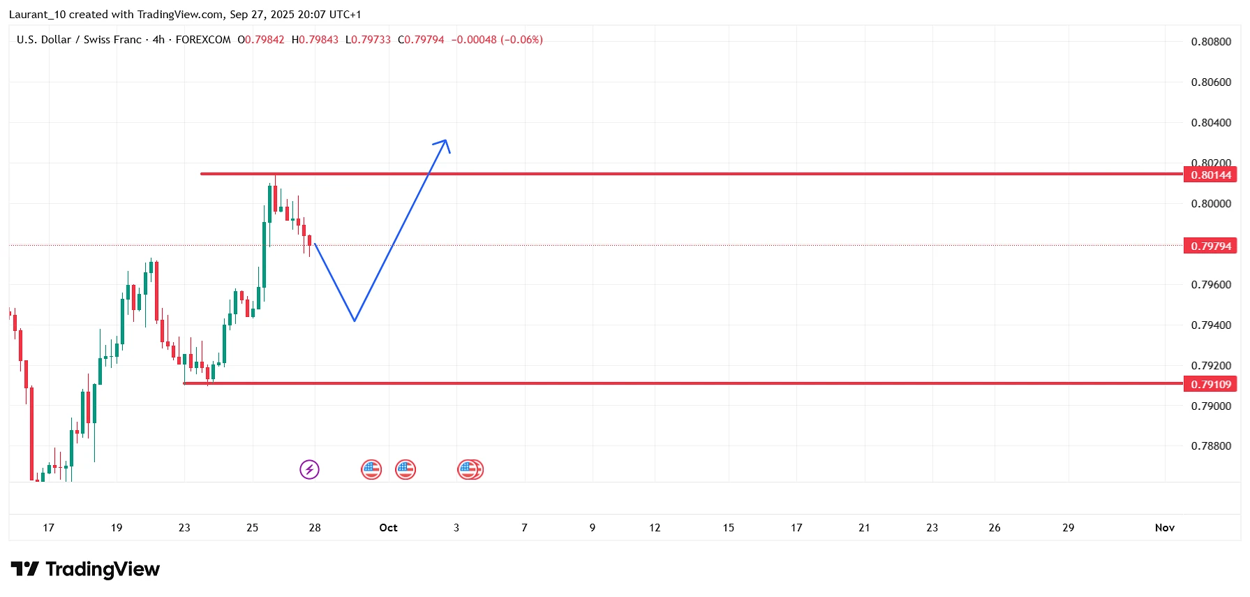 🎯 USD/CHF vétel CPI -0,3% alatt 0,7940-nél