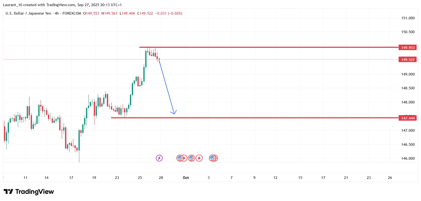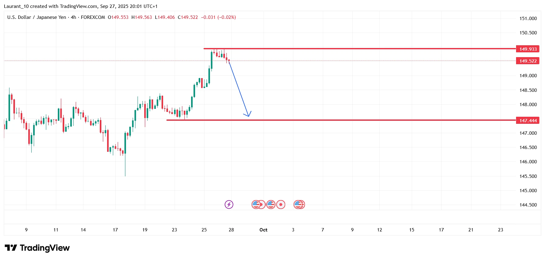 🎯 USD/JPY eladás Ueda héja-kommentjei esetén 149,40-nél