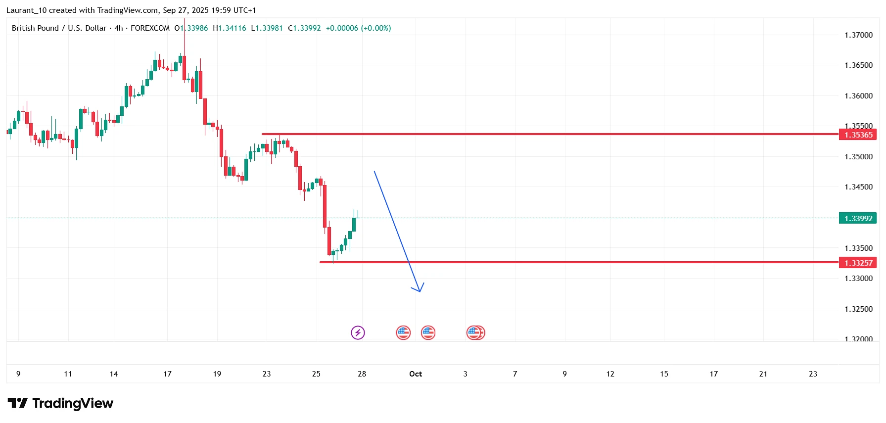 GBP/USD: Támasz 1.3320, ellenállás 1.3400–1.3535.