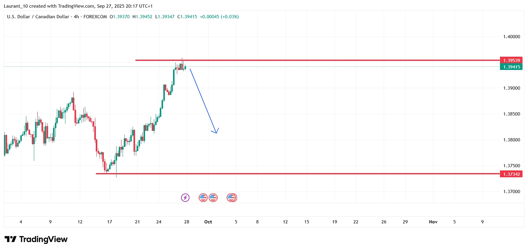 🎯 USD/CAD eladás NFP <30K vagy órabér <0,2% esetén 1,3930-nál