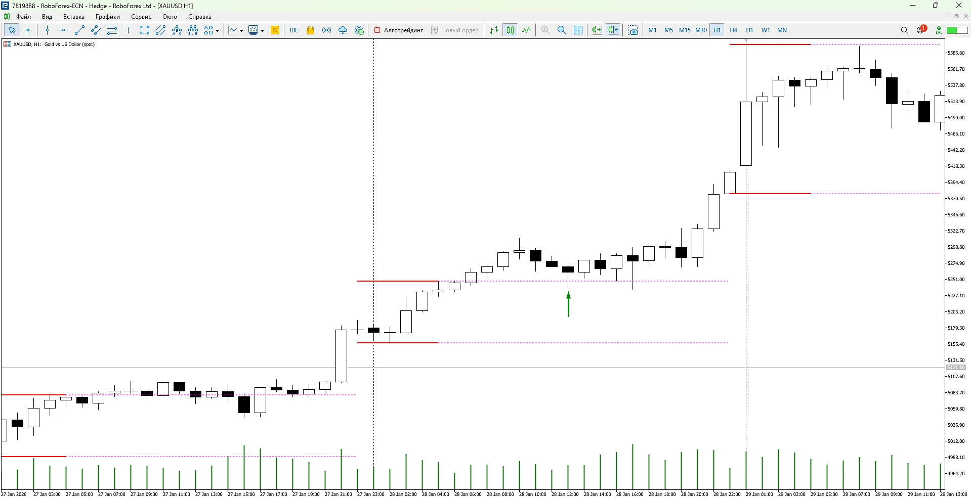 Достаточно взглянуть на график, чтобы понять, где находится ключевая зона и произошёл ли пробой.