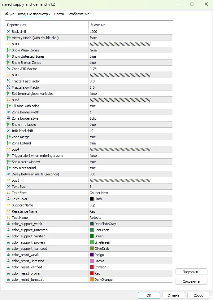У Shved Supply & Demand много параметров, но ключевые из них легко понять: