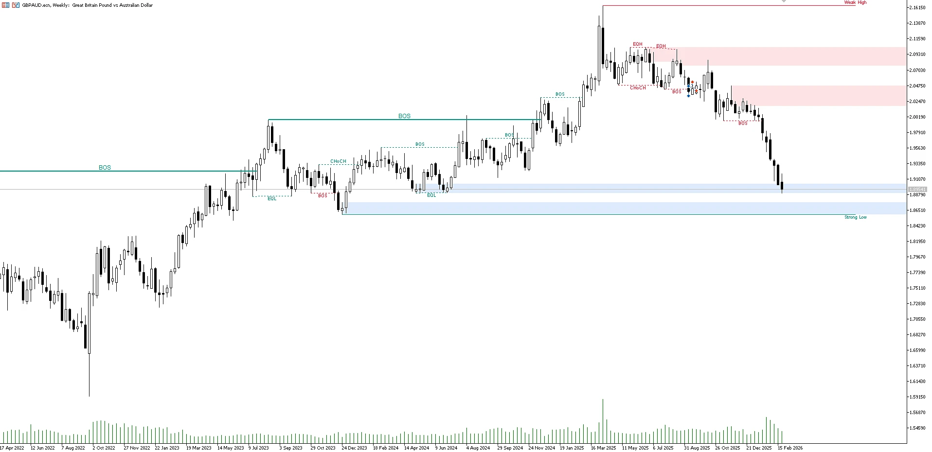 Дождитесь CHoCH для возможного разворота.